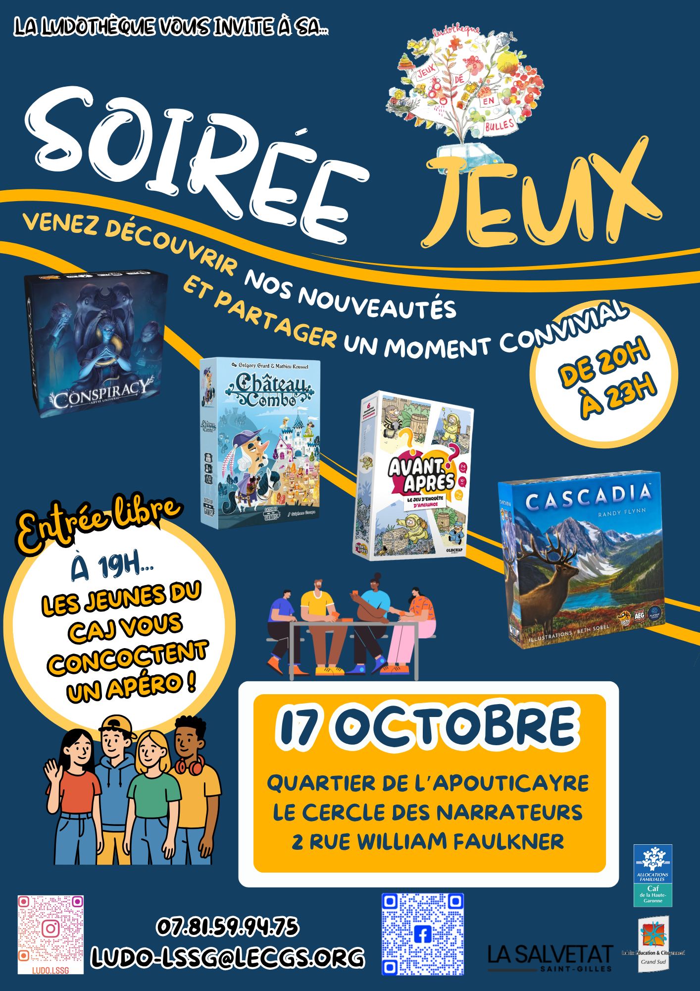 L’agenda permet de facilement connaitre les dates des futurs événements comme les festivals de jeux, les soirées jeux des associations ludiques ou autres animations autour du jeu.