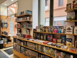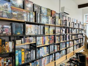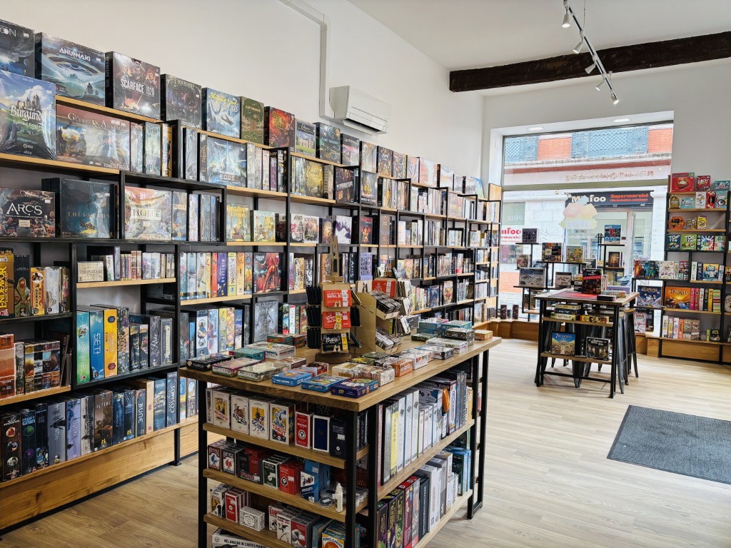 La boutique propose un large choix de jeux de règle (pour tout âge et pour tout public), des jeux d’enquêtes et d’énigmes, des casse-têtes et jeux de logique, des jeux de cartes, une large sélection de puzzles, surement la plus large sélection à Toulouse de jeux de rôle et des accessoires (dés, tapis, …).